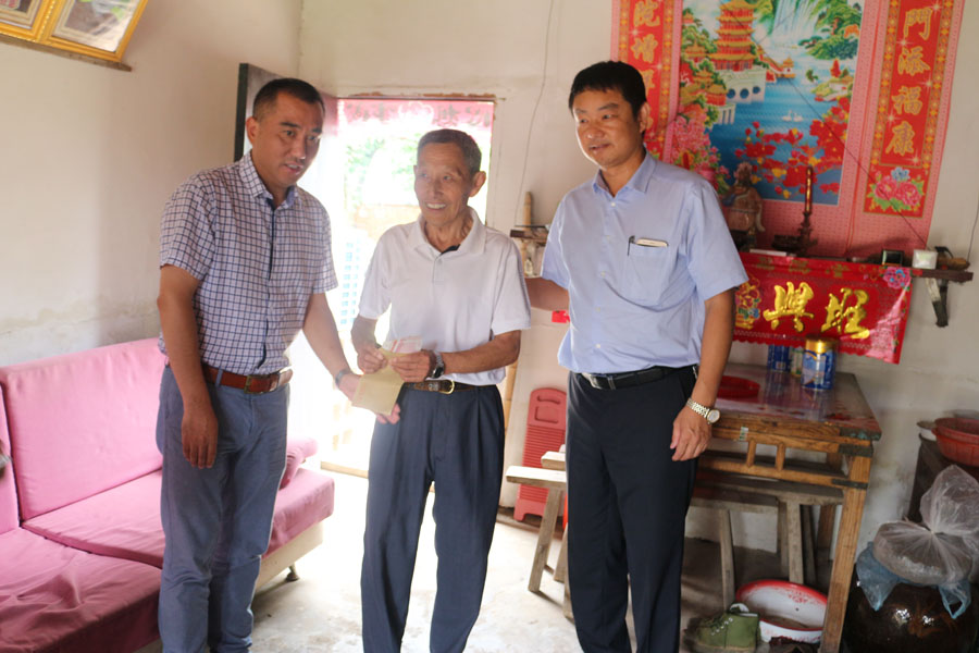 6月24日上午,中國揚子集團有限公司黨委委員、副總經理朱培代,黨委委員、總經理助理朱林春,帶著集團公司全體員工的深情厚誼,深入結對脫貧幫扶單位定遠縣界牌集鎮界牌社區,開展送溫暖慰問貧困老黨員活動。為慶祝中國共產黨誕辰96周年,中國揚子集團有限公司以“兩學一做”常態化制度化專題教育為契機,結合“黨員活動日”和市委組織部《關于開展“集中走訪幫扶月”活動的通知》要求,積極開展黨建教育活動,推進集團公司脫貧幫扶工作扎實有效開展。一是落實脫貧幫扶專項資金。集團公司落實3.4萬元脫貧幫扶專項資金,用于界牌社區三家特困戶的危房改造。二是大力開展黨建教育。開展慶祝建黨96周年黨建教育,扎實推進集團公司“兩學一做”教育常態化制度化,認真上好“三會一課”,落實集團公司基層黨組織標準化建設。三是組織捐款,慰問結對幫扶村困難黨員。集團黨委領導班子帶頭,動員組織公司全體黨員干部捐款。共籌得愛心捐款3900元,在“七一”前夕慰問界牌社區困難黨員,為困難黨員送去黨組織的關懷、溫暖與節日的祝福。