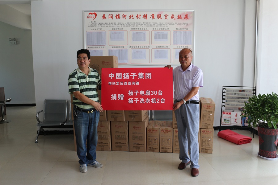 為進一步幫助幫扶村困難群眾解決實際生活困難,按照幫扶計劃,7月31日上午,揚子集團向河北村捐贈了揚子電扇30臺、揚子洗衣機2臺等一批揚子產品,向該村徐安俊、趙廣帥兩家特困戶送上了洗衣機和電風扇,炎炎夏日送去揚子一片愛心,同時鼓勵貧困戶樹立攻堅脫貧信心,增強發展意識,依靠辛勤的勞動,早日脫貧。