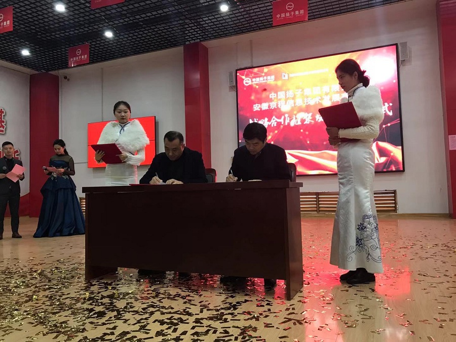 開業(yè)慶典上,揚子集團與金鵬控股集團和安徽京程信息技術(shù)發(fā)展有限公司簽訂戰(zhàn)略合作協(xié)議,深化合作,優(yōu)勢互補,互利共贏。活動現(xiàn)場還舉行了“感恩有你”、“開門紅”抽獎送禮活動,并現(xiàn)場為獲獎?wù)?/span>頒獎。滁州演藝集團的演員在開業(yè)慶典上表演了精彩的文藝節(jié)目。