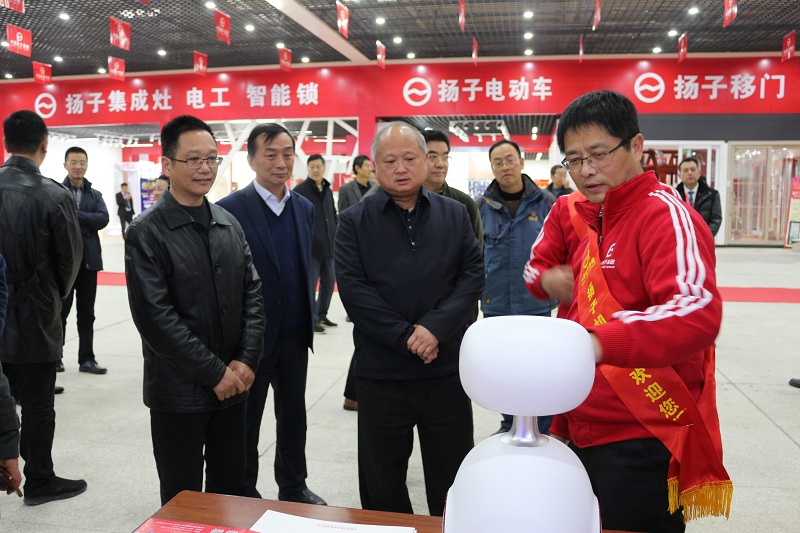在揚子集團產品展示中心內,王圖強主任走進揚子品牌各企業展館詳細詢問了解企業生產經營、市場銷售等情況,勉勵揚子集團進一步發揚傳承“大揚子”精神,主動對接“大江北”,以市場為導向,不斷提高產品市場競爭力,做大做強揚子品牌,為滁州經濟發展多做貢獻。揚子集團黨委書記、董事長、總經理闞乃天匯報了揚子產品展示中心開業運營和企業發展情況。
