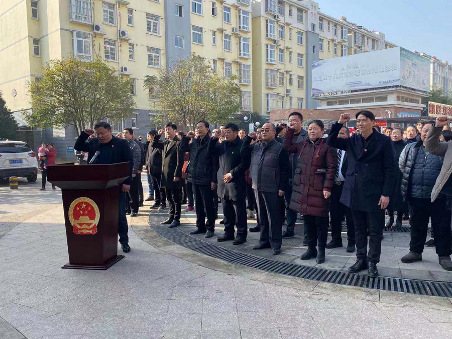 活動現(xiàn)場,當雄壯鏗鏘的旋律響起,全場整齊肅立,奏唱國歌,并進行了莊嚴的憲法宣誓。大家紛紛表示,要自覺把憲法誓言銘刻于心中,把憲法精神轉(zhuǎn)化于行動,奮力爭當憲法的忠實崇尚者、自覺遵守者、堅定捍衛(wèi)者和有力推動者。