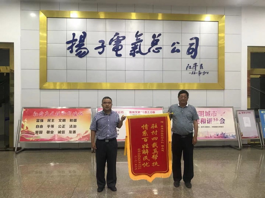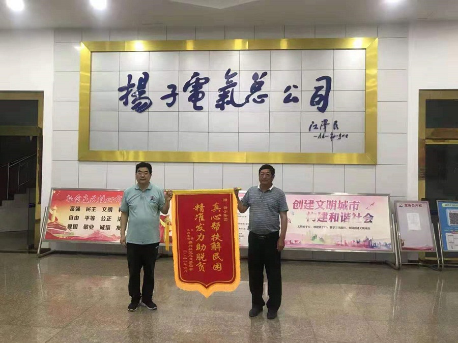 座談會上,界牌社區(qū)分別向揚子集團、公司第七批選派干部贈送了錦旗。