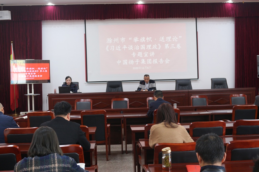 為學懂弄通做實習近平新時代中國特色社會主義思想,深入學習宣傳貫徹習近平總書記考察安徽重要講話精神和黨的十九屆五中全會精神,推動黨的最新理論成果在國有企業(yè)落地生根,開花結果, 11月6日下午,滁州市“舉旗幟·送理論”《習近平談治國理政》第三卷專題宣講中國揚子集團報告會在揚子集團舉辦,揚子集團黨委班子成員、黨員干部和全體職工參加活動。