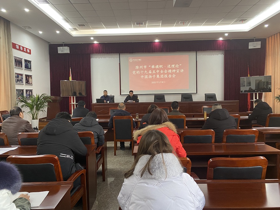 1月8日下午,中國揚子集團召開“舉旗幟·送理論”黨的十九屆五中全會精神專題宣講報告會,揚子集團黨委班子成員、黨員干部和全體職工參加活動。